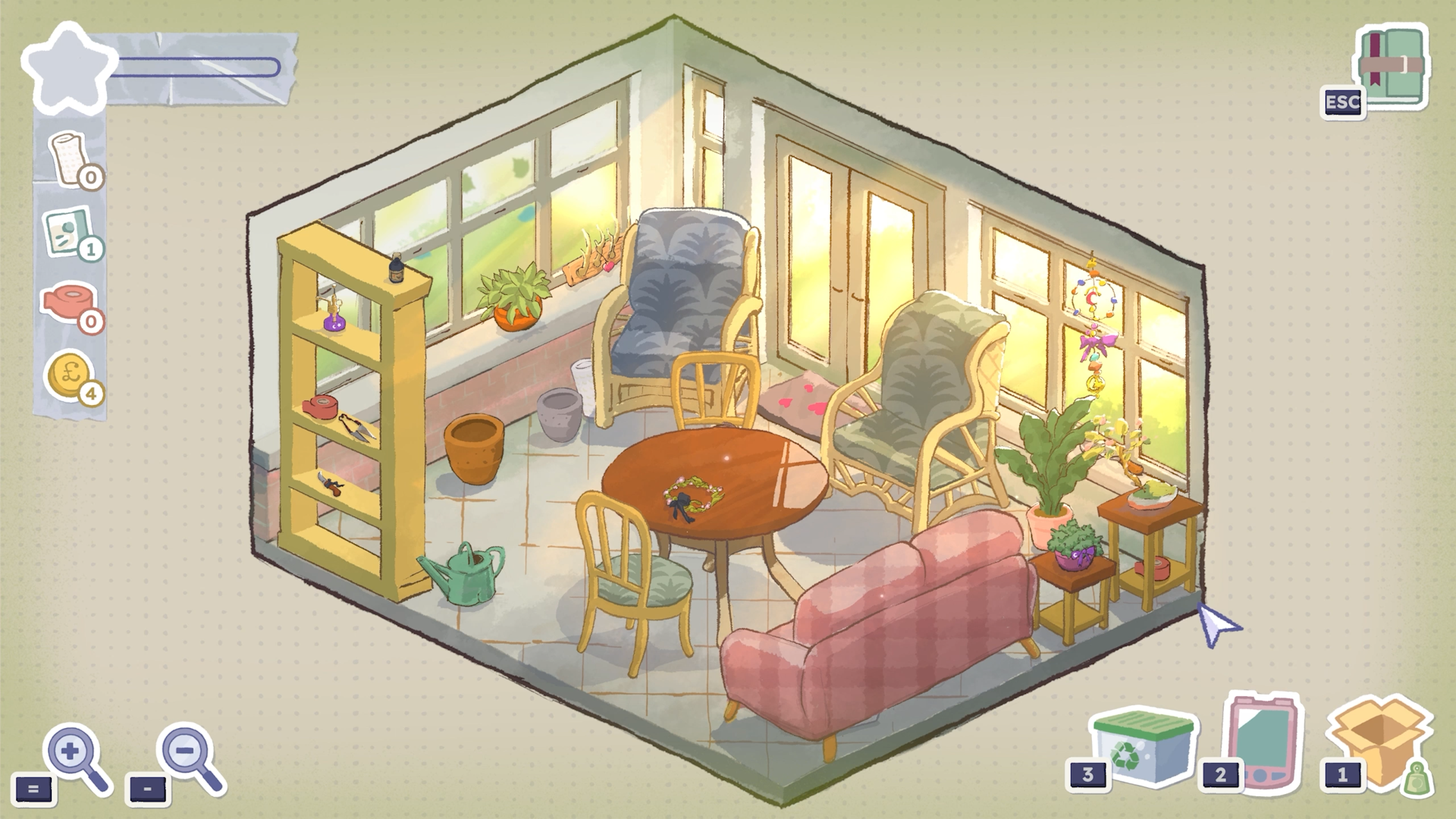Explore the house room by room and decide what you'll keep, what should be sold, and what can be recycled. Move furniture and search through cupboards and drawers to find tucked-away items which may hold more intriguing memories. You only have one cardboard box for keepsakes per room, so prepare for difficult decisions as you choose which elements of Tabitha's life you want to remember.