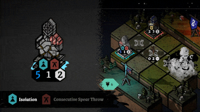 Fights remind me of the classic board game Stratego, but on a smaller scale and with a lot more depth. At the start of battle, you spend action points to drag units from your reserves onto the battlefield grid. Once the turn begins, units act automatically according to their speed and traits, advancing and attacking without further input. Between turns, you can activate a commander ability or spend additional action points to deploy more mercenaries or move existing units laterally or backward, reinforcing weak spots or setting up decisive pushes. Your goal is to reach the enemy camp at the end of the board and destroy it before the enemies do the same to you. The crucial detail is that your camp’s health won’t regenerate between battles, and if it falls to zero, the run is over.