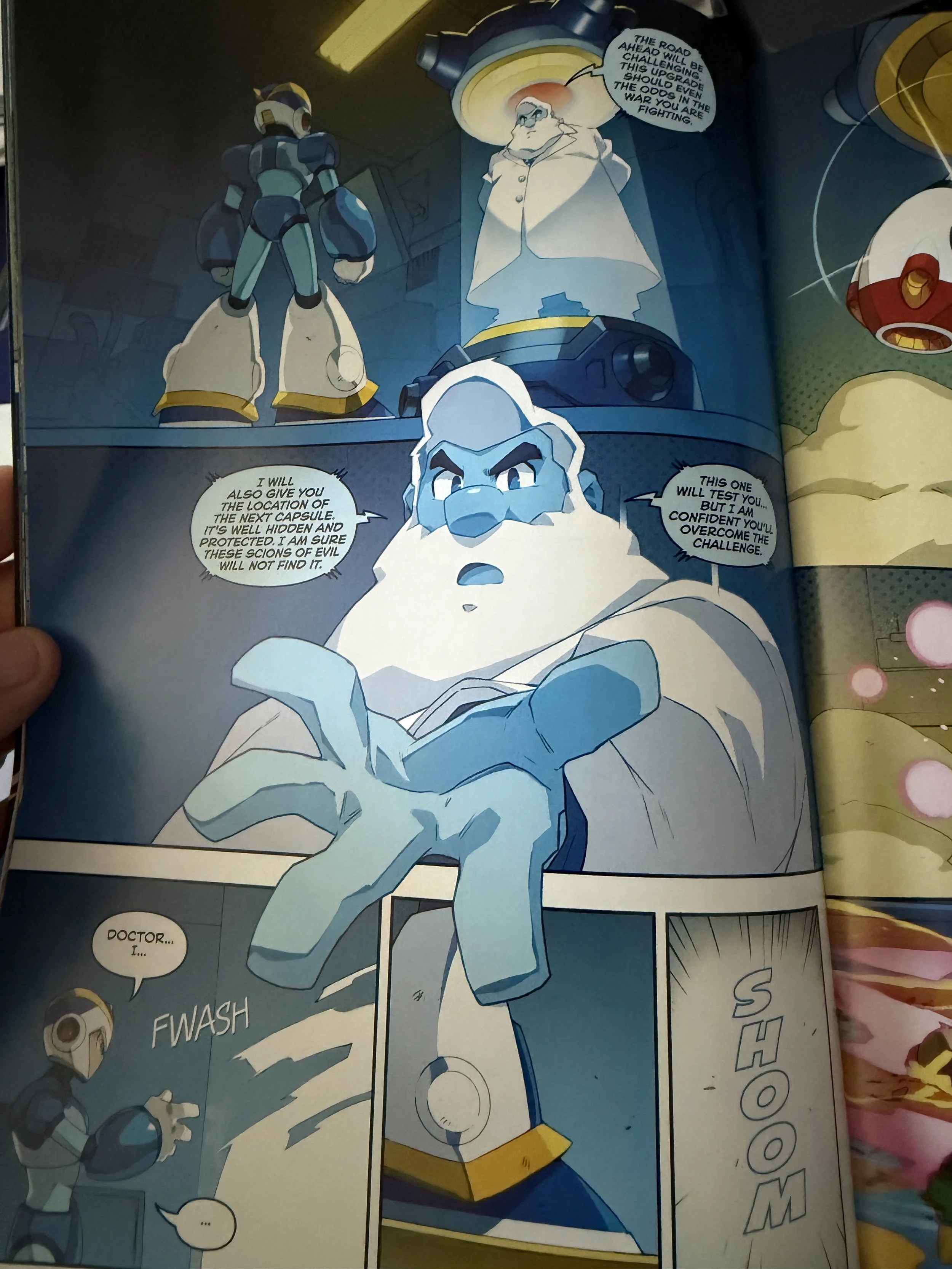 Arseneault clearly knows the source material. The issue opens with a brief but punchy dispatch of Spark Mandrill before shifting its real weight to the Flame Mammoth encounter, which gets the room it deserves. That fight is the centerpiece here, and it plays out with satisfying escalation. The structure mirrors the game's own rhythm throughout: boss encounters, a capsule upgrade sequence with Dr. Light, and the slow accumulation of dread as more Mavericks remain on the board. That final image of X standing before the monitor wall, four targets still active, lands with genuine narrative weight. Arseneault doesn't just recreate the game's beats. He adds texture to them. The brief exchanges with the support crew give the mission a human cost the SNES cartridge could only gesture toward, and the Dr. Light capsule scene, rendered here as a bittersweet farewell that fades mid-sentence, hits as hard as the 16-bit dialogue box did.