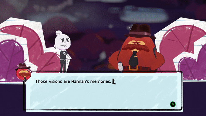 The game presents a unique juxtaposition between live-action videos of a little girl named Hannah and her drawings that seem to come to life within her notebook. The game effectively captures your attention by playing these videos in the background as a movie, gradually revealing more of the story. On the other side of the story, we follow an unfinished doodle of a stick person named Stick, voiced by Brian David Gilbert (Who was my favorite Polygon member and youtuber) and Deneen Melody from Evangelion. Stick is an amnesiac who has recently moved to town and is determined to help the town with its “sog” problem. He achieves this through a beat ‘em up/dodgeball-style battle system.