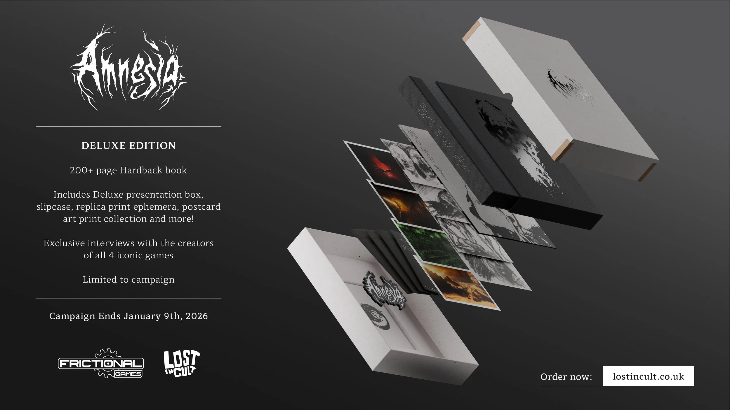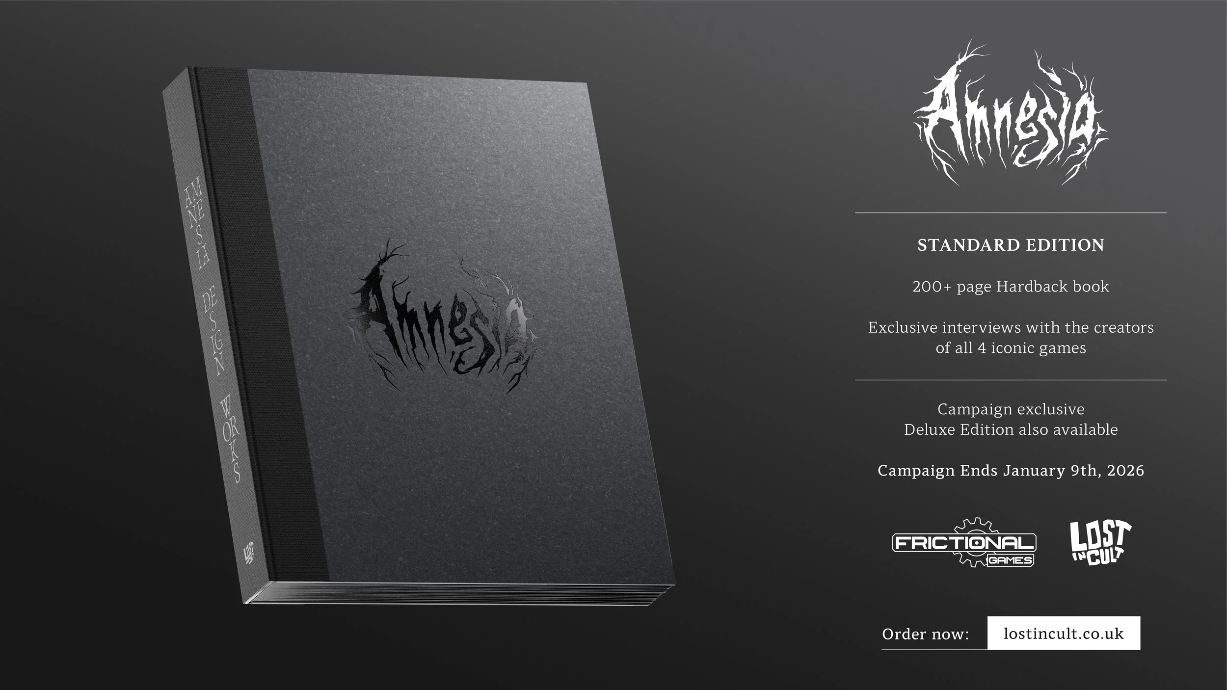 The story of Amnesia: The Dark Descent's development, and that of its sequels – Amnesia: A Machine for Pigs, Amnesia: Rebirth, and Amnesia: The Bunker – has never before been collected in one place; either scattered to the four winds or sequestered to the darkest, cobweb-laden corners of living memory. Until now.