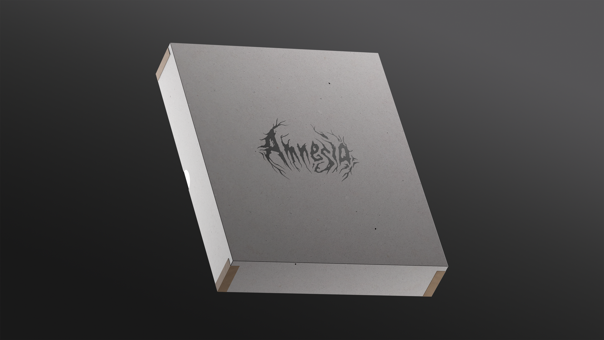 Show your shelf off with Amnesia: Design Works Deluxe Edition's raw greyboard-style presentation box, decorated with an black foiled logo.