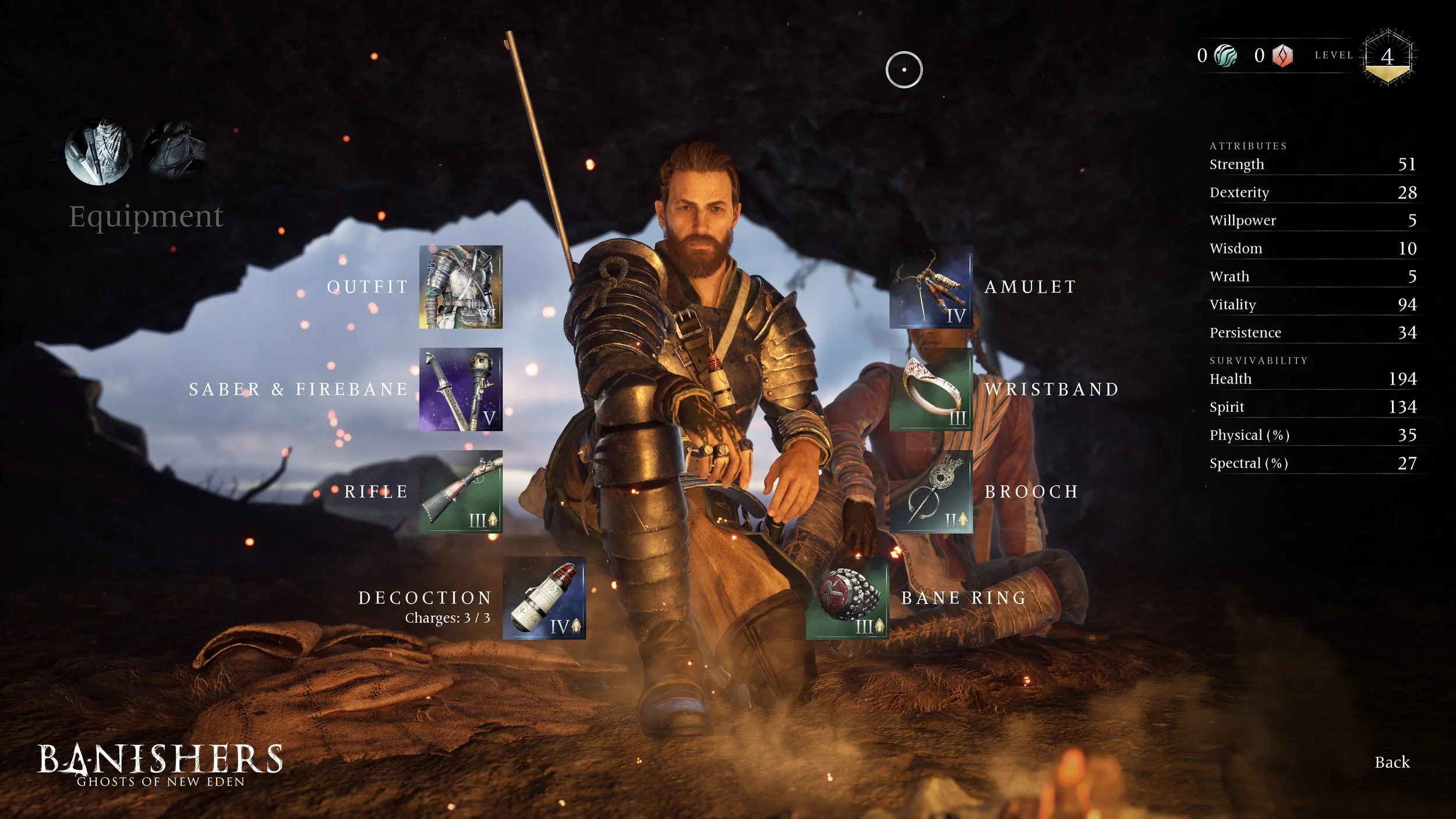 The game takes place in New Eden, a British colony in the American northeast, in 1695. Banishers Antea Duarte and her apprentice and lover Red mac Raith arrive at the colony, hired to help lift a curse that’s been plaguing the community. Banishers are essentially ancient Ghostbusters; they use tools, rituals, and magics passed through their order to solve hauntings, to “banish” ghosts that won’t leave the mortal realm and torment from the living. Their attempt to exorcize the powerful ghost causing the curse ends in disaster, killing Antea in the process. Red barely survives and discovers that Antea’s ghost hasn’t moved on. With her help, he must now vanquish the ghost that haunts New Eden and lift the curse. Along the way, they solve other haunting cases plaguing the inhabitants of New Eden, making decisions that will deeply affect the community and the outcome of the story.
