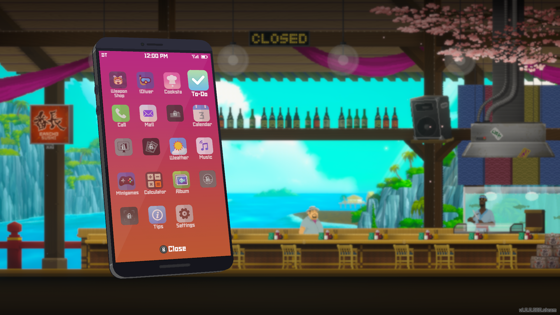 At night, Dave heads back to the restaurant and helps in business operations. Early on you’re the front-of-house expert: pouring tea and dishing out Bancho’s signature sushi dishes. You can research new dishes based on freshly-caught fish, re-design your restaurant, and hire on/train additional staff. As you produce more happy customers, you’ll attract likes and follows on an in-game app called “Cooksta”, which unlocks upgrade slots for the restaurant.