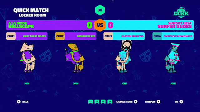 Dunk Dunk is a basketball party game for up to four players, or one player versus the CPU in story mode, where the goal is to outscore opponents. It offers a surprising level of character customization, allowing players to choose from various characters and personalize them by mixing and matching heads, limbs, and bodies, as well as changing colors even some characters make surprise visits like Yooka Laylee. The gameplay is straightforward. The primary controls are jumping and dashing (same button) and a block button. However, retaining possession of the ball is key, as it's easily stolen once airborne. The most effective scoring method is a slam dunk into the "basket," which resembles a black hole. An amusing in-game moment involved the CPU inadvertently scoring in its own basket after intercepting a last-second shot. Dunk Dunk in a nutshell is Speed Runners but as Basket Ball. Dunk Dunk is an excellent couch co-op game, and playing with a full party of four is chaotic and an incredibly fun experience.