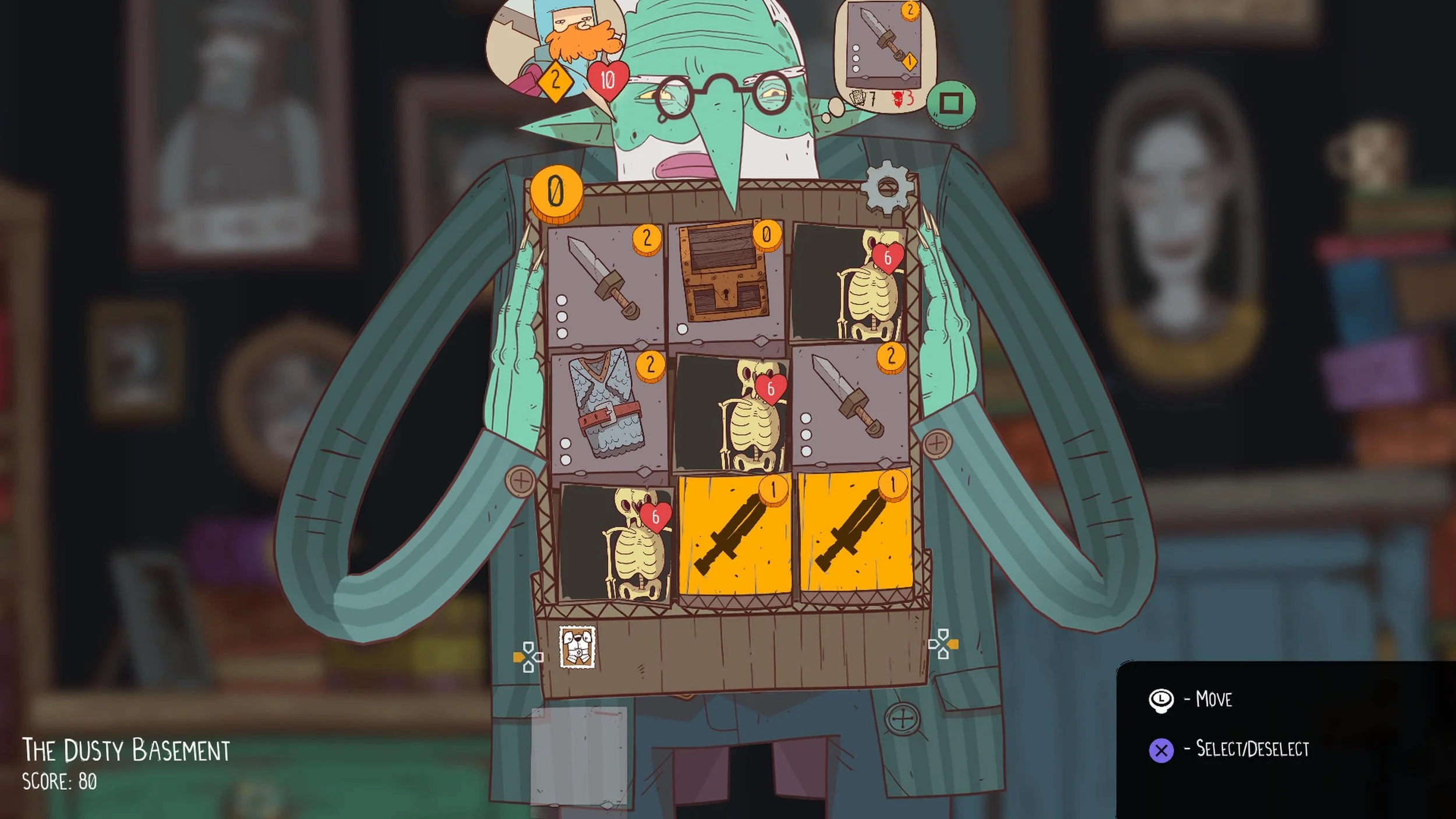 The core of the game is deckbuilding and exploring randomly generated dungeons in a card layout. Your hero's cards shuffle into a dungeon deck with monsters, then deal out on a 3x3 grid. Defeating monsters earns gold to acquire your own items and abilities, with new cards replacing cleared ones in the grid. After each dungeon, you gain powerful cards and perks, passive traits that bend the game's rules.