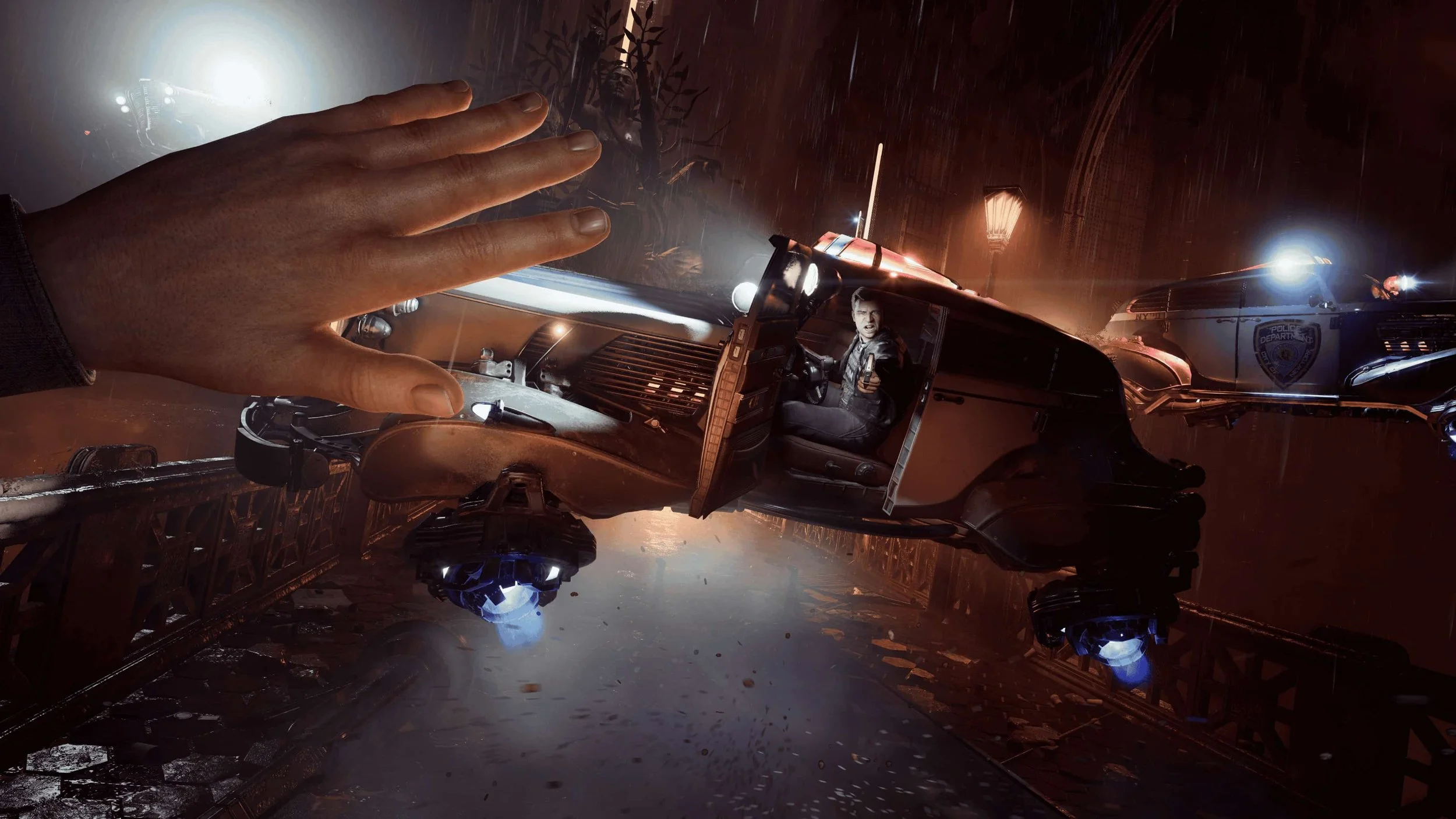Nobody Wants to Die is played entirely in first person. Its lushly rendered retro-future, art deco, lived-in environments are gorgeous. You get to see the various levels of the, stratified city that James navigates in his flying 1930s style car. This isn’t an open world game—it’s very linear—yet it’s easy to get lost in the details of every place you visit thanks to the game’s incredible, detailed world design.