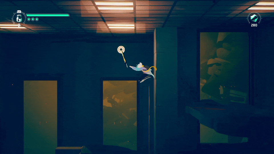 The art direction is beautiful. 3D environments with depth add richness to the 2D gameplay; the ruined cityscape’s darkness contrasts wonderfully with Luca’s vibrant color palette. Character and enemy designs are appealing and distinct. All are beautifully animated, with a focus on complementing the gamefeel. Every impact effect and animation frame reinforces the combat's weight.