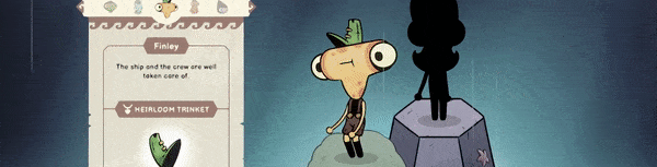 Once you’ve finished upgrades you can embark once more on your ship to try and find more people lost at sea and get to the giant monster at the end of the board. Yes, “board”. This game takes elements from a board game and the level select has hexagon spaces that you can move your ship to. Each move on the board triggers the count down and the darkness takes over the spaces you have yet to land on ahead. Ship of Fools has a fantastic atmosphere and seems like it takes small inspirations from other games and forms of media, for example, board games weren’t the only inspiration for this game. The music and the way characters talk remind me a lot of Banjo Kazooie, though the way the game plays and the aesthetic is nothing like that game, so I’m not entirely sure it wasn’t a coincidence.