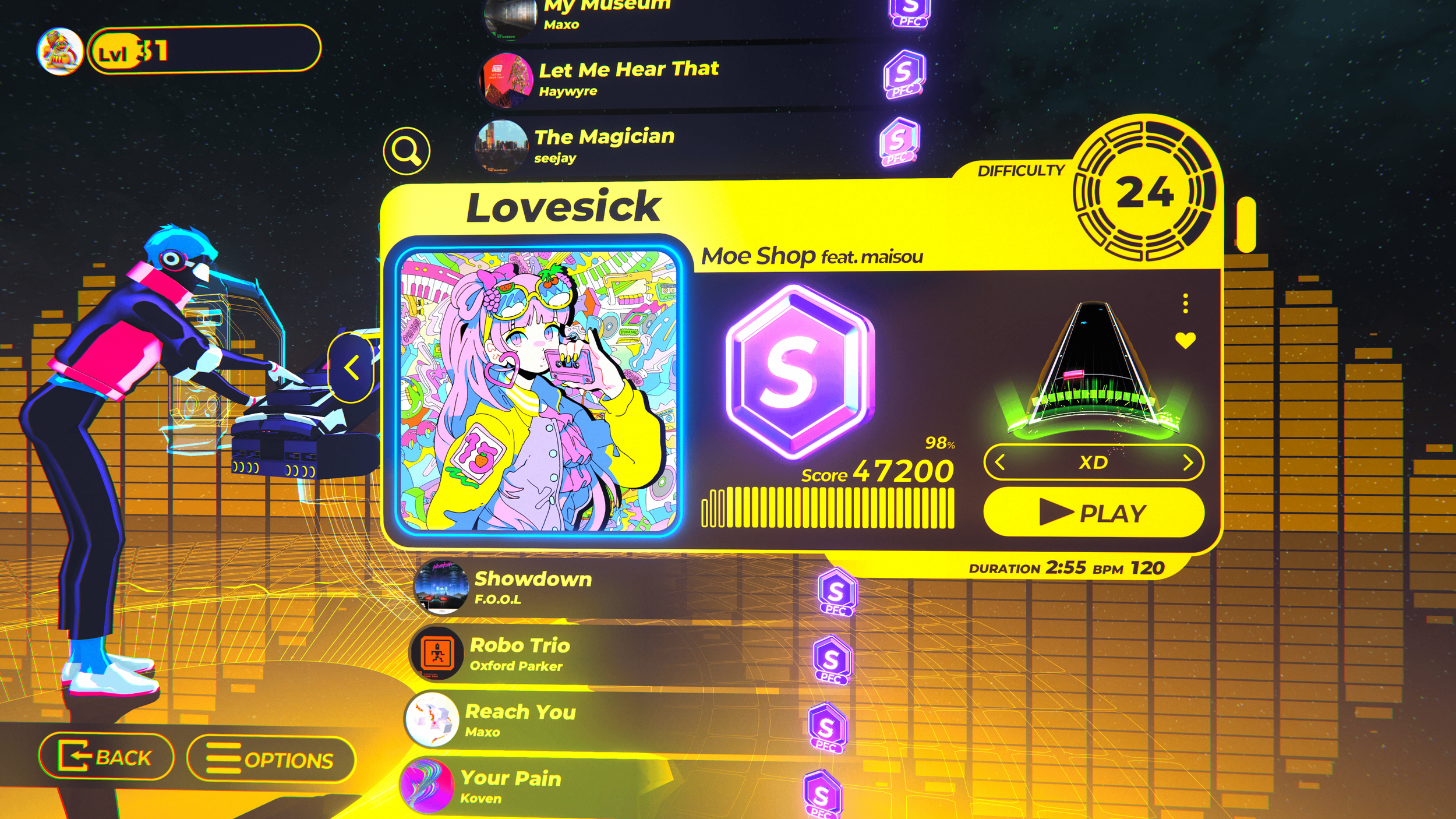 I’ve been trying to get good scores for all the songs in hard mode, and there are still two more difficulty levels to tackle above that. The base game offers over 60 licensed and original songs, and the available DLCs offer 10 additional tracks each from Monstercat and Chillhop. I can’t wait for new DLC and if I get too impatient I might have to buy the PC version to play custom tracks made by other players using the level editor.