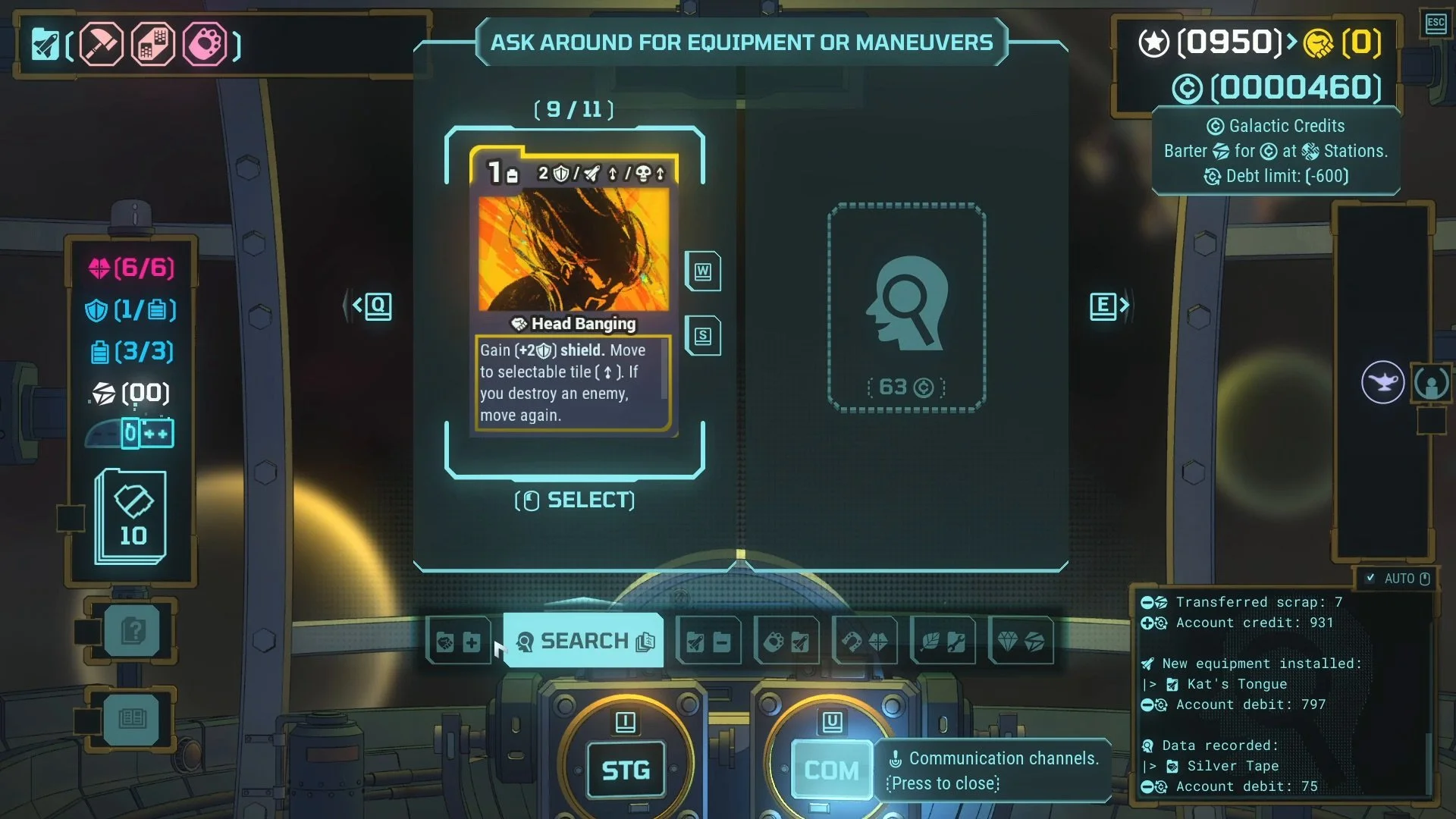 During the jump, the player’s ship is placed on a 3x3 grid along with random enemies, mines, debris, and other obstacles. To complete the jump, the player must play cards from their deck to defeat most of the enemies. Each card costs energy, and once the player runs out, the enemies take their turn. Enemies act from the top left of the grid, moving row by row, which is an important detail that players can use to plan their attacks. The enemies also display icons indicating their intentions for their next action.
