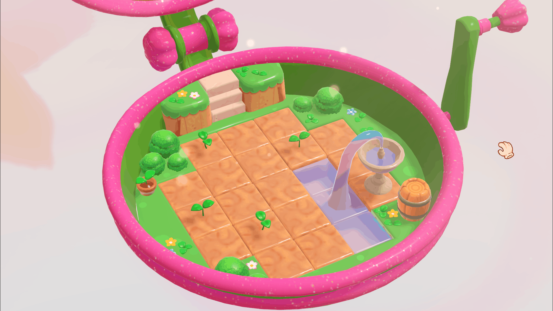 Gameplay is straightforward: players grow crops and operate a hand crank for irrigation. Crops act as currency for buying additional crops, with costs increasing progressively. Crops can also be used to purchase decorative stickers and furniture to personalize the garden's container – a small, spherical toy reminiscent of a Tamagotchi or Digivice. Both the interior and exterior of the garden can be customized, including the color of the sky, offering players a high degree of control over their environment.